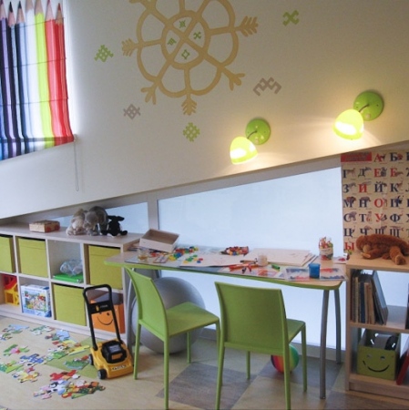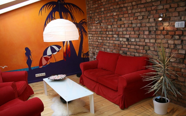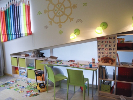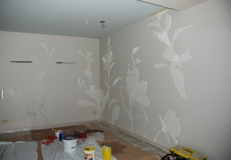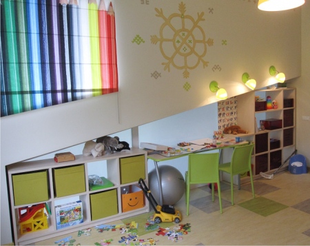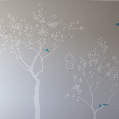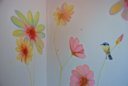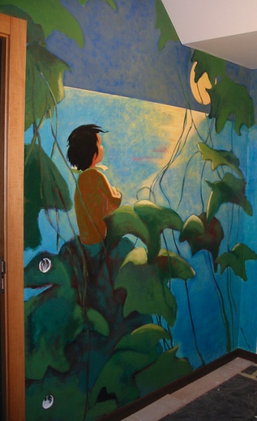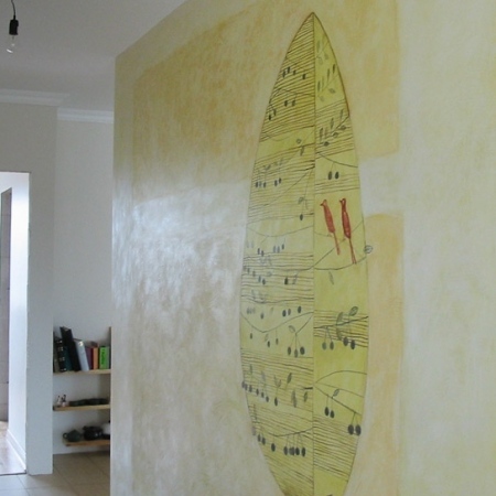 Interior design Eva Stanevica, mural painting designed and done by me.